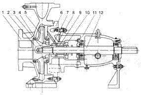 IH型不銹鋼化工泵泵蓋通過止口固定在中間支架上,然后通過泵體與中間支架止口的聯接把泵蓋夾緊在中間,泵體是軸向吸入,徑向排出,腳支承式,可直接固定在底座上。懸架部件通過止口固定固定在中間支架上,并用懸架支架支撐在底座上。為拆卸方便,設計了加長聯軸器,檢修時可以不拆卸進出口聯接管路,泵體和電動機。只需拆下聯軸器的中間聯接件,即可退出轉子部件進行檢修。這是國際上通用的一種結構形式。