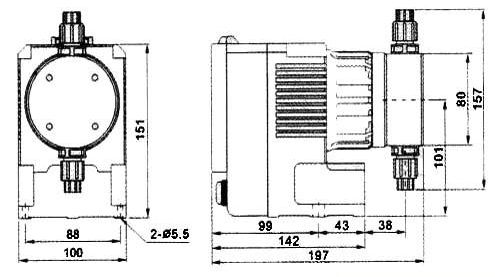 | 型號 | 流量 L/H | 壓力 Bar | 沖程頻率 次/分鐘 | 功率 W | 進出口徑 mm |