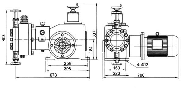 DY-D型液壓隔膜式計量泵的外形安裝尺寸圖