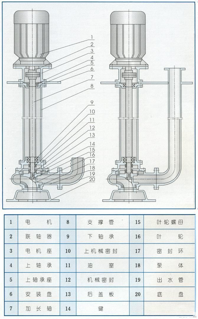 9、泵有單管安裝和雙管安裝兩種,支承件有圓盤(pán)和方盤(pán)安裝。